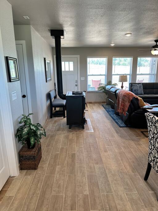 *Our home is 2.5 miles on a dirt road--be prepared to drive slowly on this stretch. Cars with really low clearance to the road may have trouble getting to the property, but most cars won't have a problem. There are two "dirt road" routes coming south on Hwy 43...on google maps you can see the alternate route--when coming from Harrison, we prefer to NOT turn on 18, but continue on Hwy 43 to Plumlee Rd (Hwy 16) instead. Your GPS will adjust when you don't turn on highway 18. *There are bugs in the country (roly-polies, crickets, spiders, flies, etc). We rarely see mosquitos. From April-June it is "tick" season so check yourselves for ticks (and your pets...our dog has never gotten one and I've only seen one tick in two years) if you've been out walking the property, just in case. You will have some insects inside the house--not a lot, and most will be dead, but some. If this would bother you, you should not choose this home :) We have started using a pest control service that uses non-toxic sprays, and that has helped significantly with the insect population. *Bring bottled water with you to drink (we will have five complimentary bottles of water waiting for you in the fridge--OR we have a Berkey water filter which you can fill the top with tap water and then drink the filtered water. *There are three mini-split AC/heating units in the home--one in each bedroom, and one in the main room. Each has its own remote so you can adjust the temperature to what you find to be comfortable. The guest book has photos and instructions if you have trouble working the remotes. *We have a septic system so please don't use bleach or bleach products in the home as bleach is not suitable for a septic tank. *Also, please don't bathe your dogs in the tub--their hair will block up the pipes so badly we will have to call a plumber (yes, this has happened :))...and it could damage the septic tank permanently. You are welcome to bathe the dogs outside using the tub behind the garage. *Last, but not least, do not let dogs go into the hot tub. If we find dog hair in the filter, we will have to empty the water and put in a new filter, plus do a deep clean. We would charge $200 for this. Thank you so much!